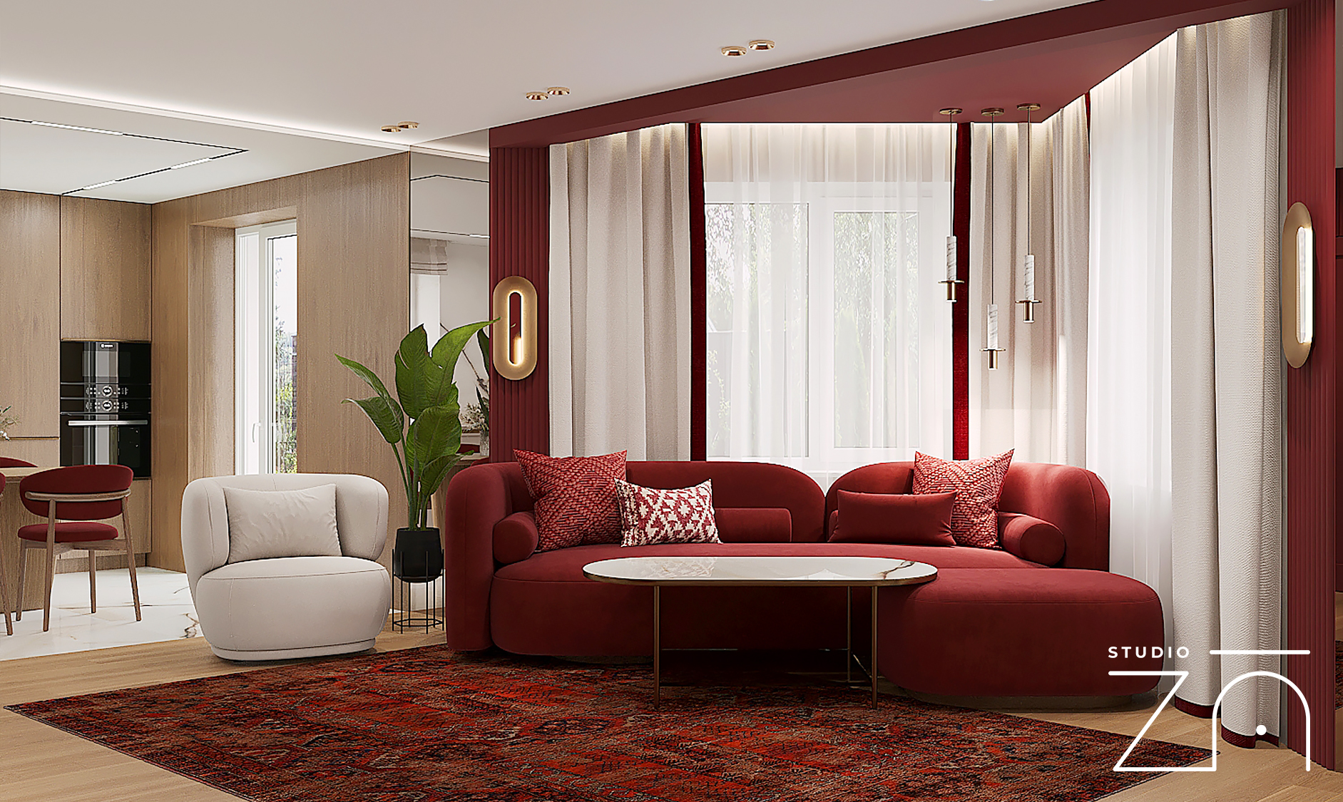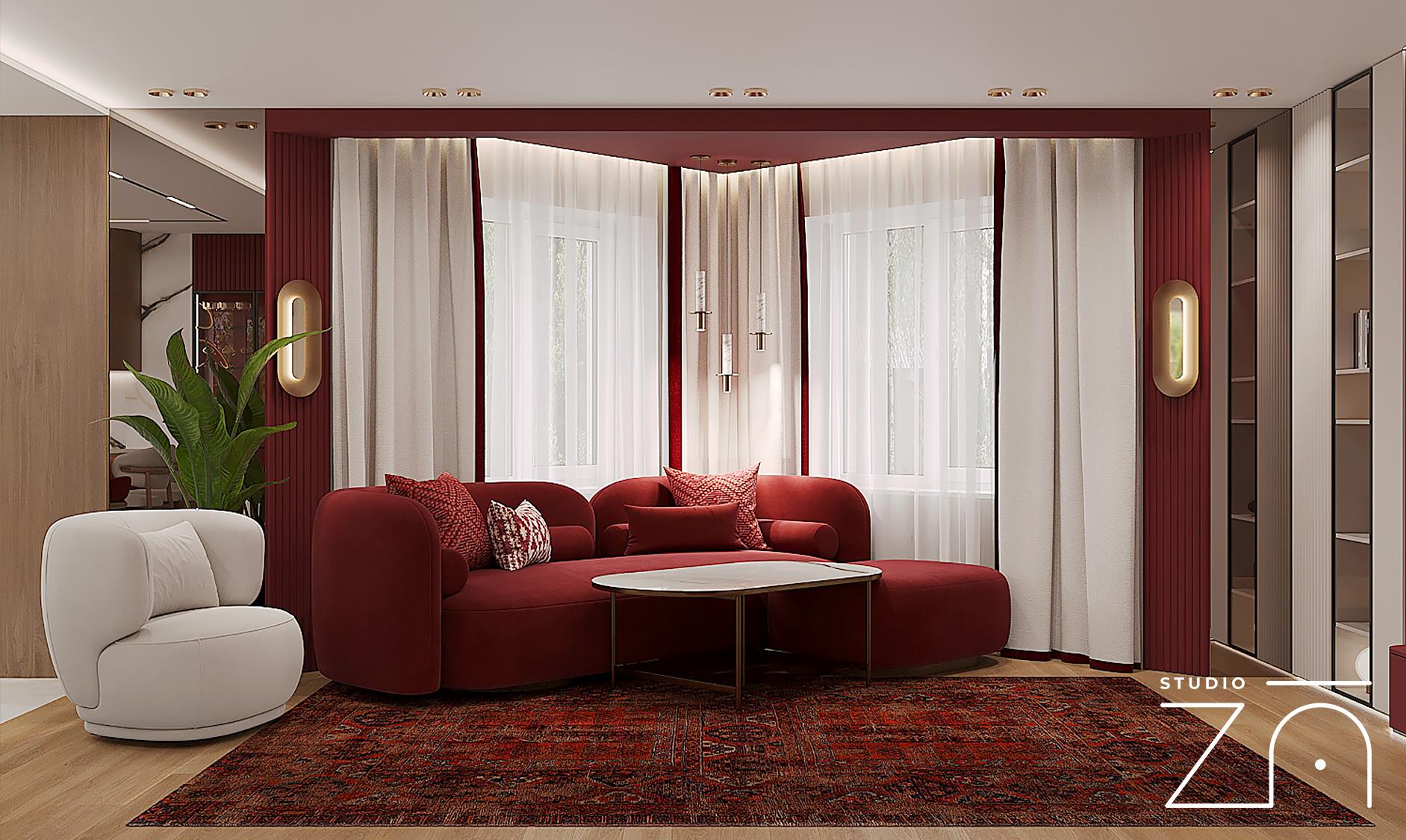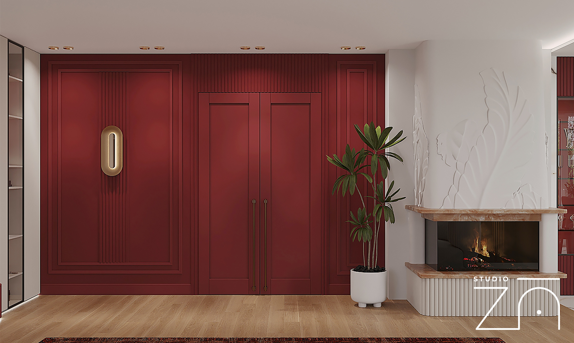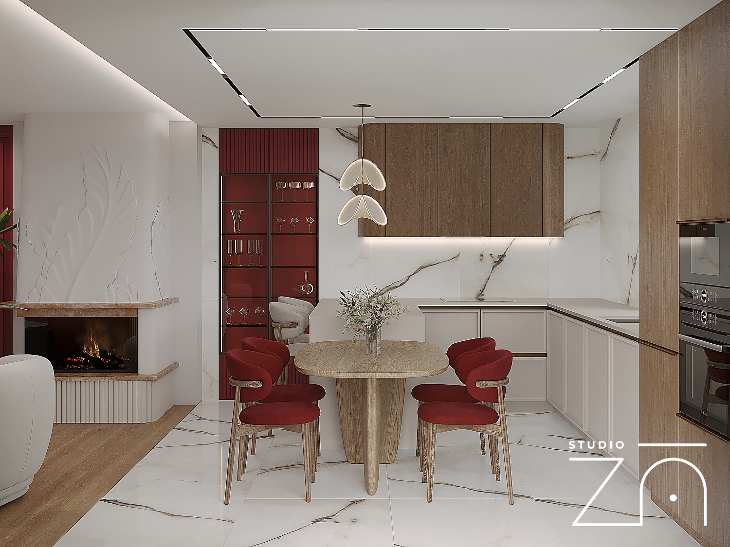 Интерьер, построенный на выразительном контрасте глубоких оттенков и светлых натуральных фактур. Пространство раскрывается через игру цвета, света и архитектурных деталей, создавая атмосферу современной роскоши.