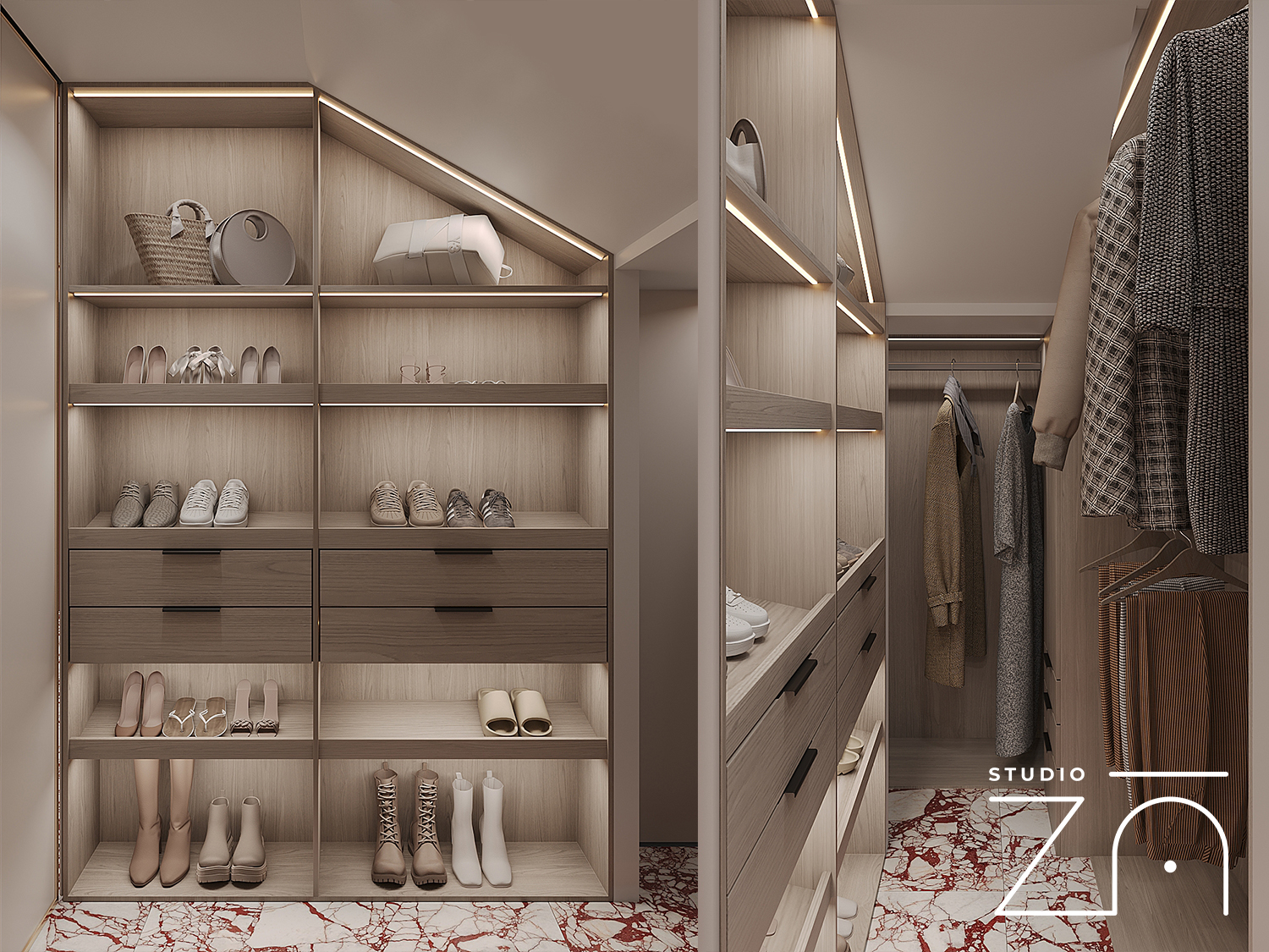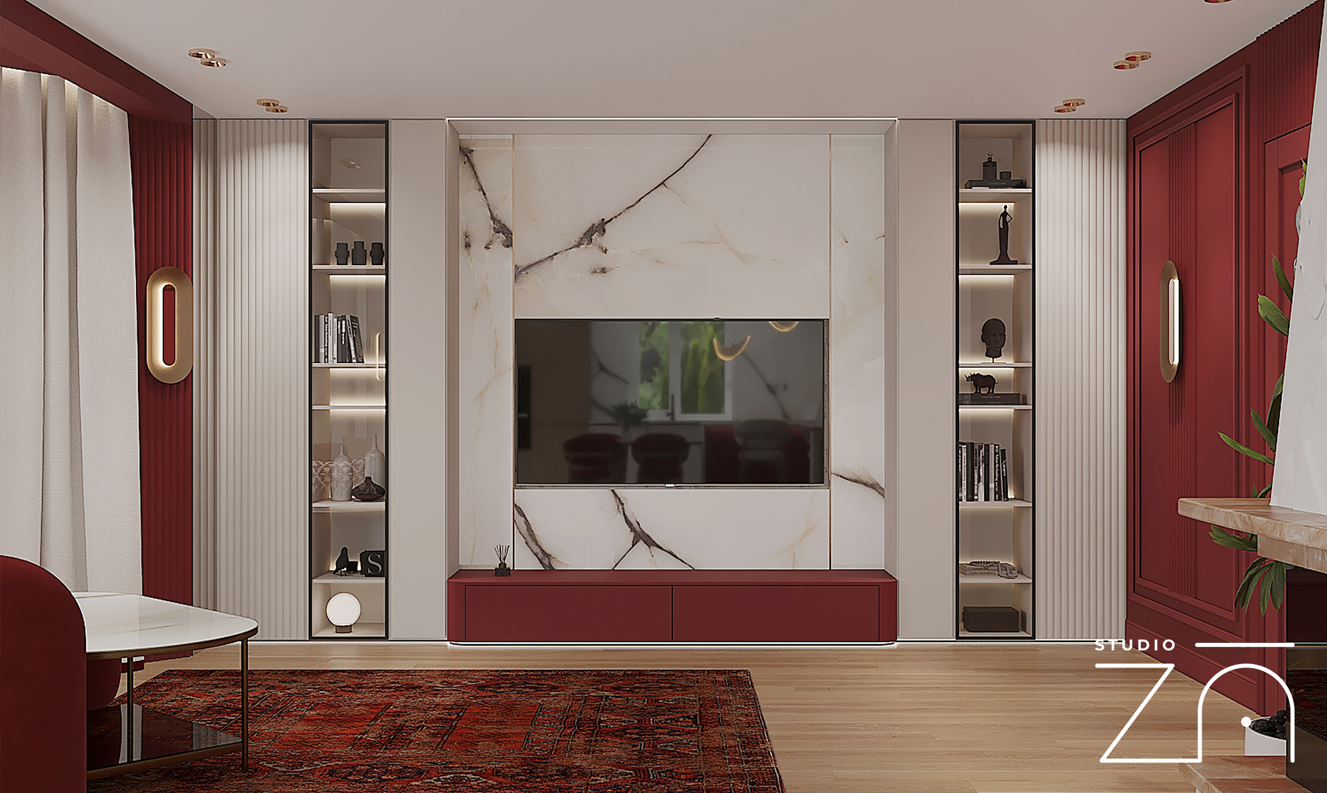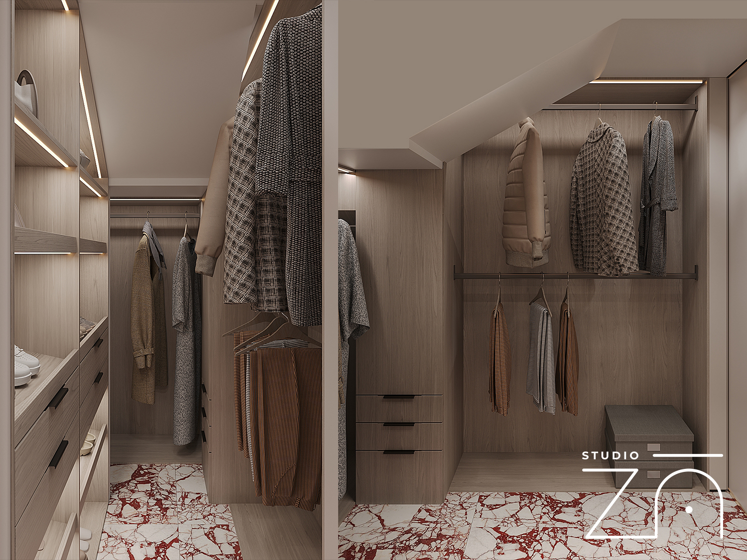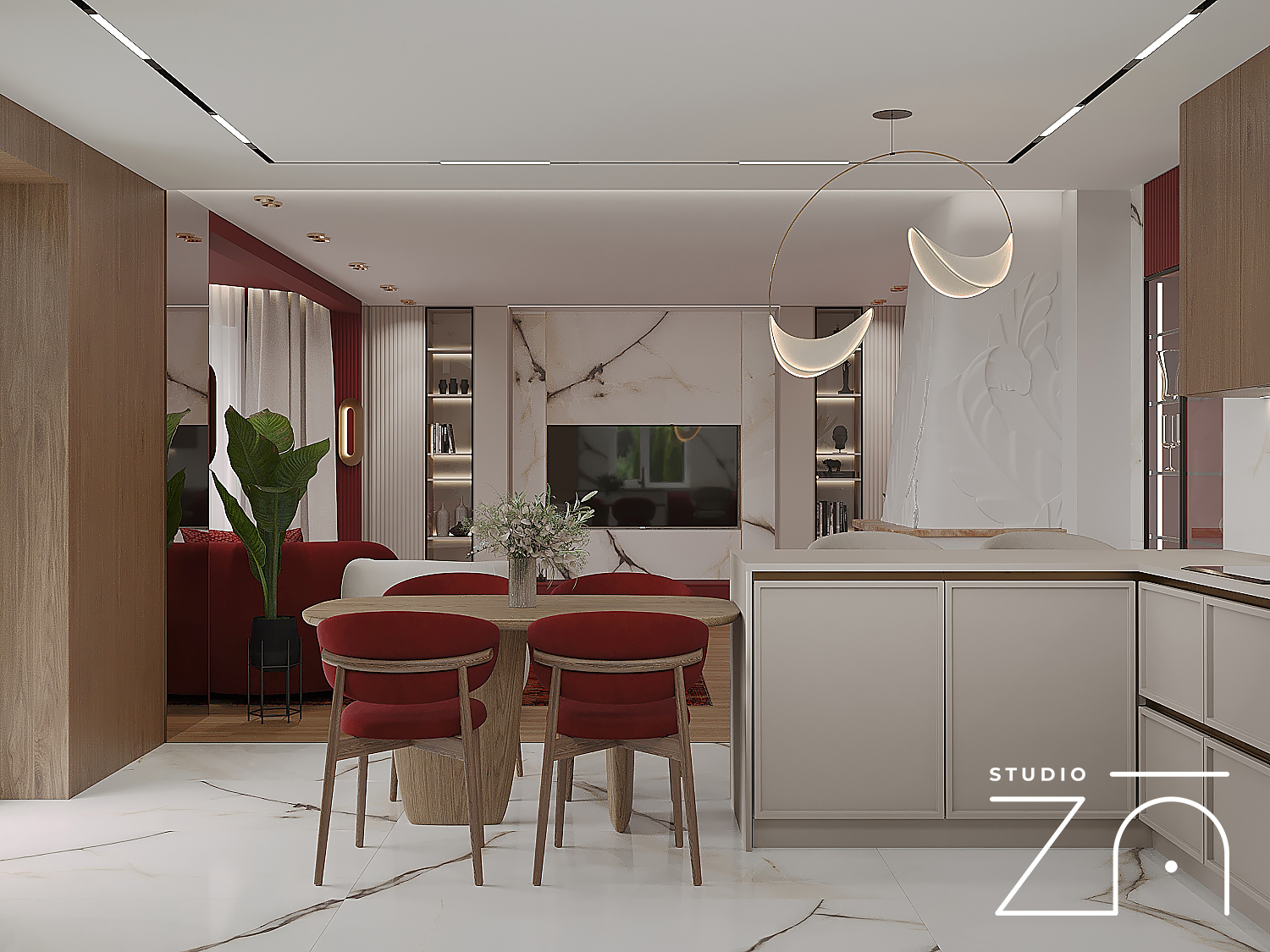 Интерьер, построенный на выразительном контрасте глубоких оттенков и светлых натуральных фактур. Пространство раскрывается через игру цвета, света и архитектурных деталей, создавая атмосферу современной роскоши.